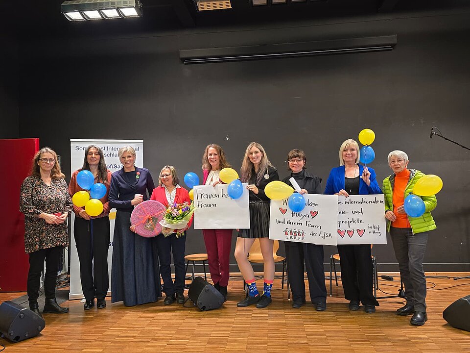 „FRAUEN unterstützen FRAUEN + MÄDCHEN in Hof“ ist das Motto der Hofer Soroptimistinnen, die seit 2011 die Projekte des Internationalen Mädchen- und Frauenzentrums der EJSA e.V. unterstützen. Auf dem Hofer Frauenfest 2026 feierten die Frauen des Hofer Clubs von Soroptimist International mit allen Gästen ihre „15 Jahre Patenschaft“ mit der EJSA – Evangelische Jugendsozialarbeit Hof und Umgebung e.V.