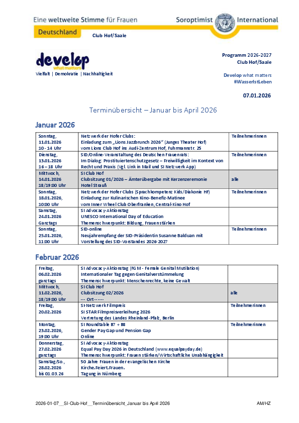Veranstaltungen Januar bis Februar 2026